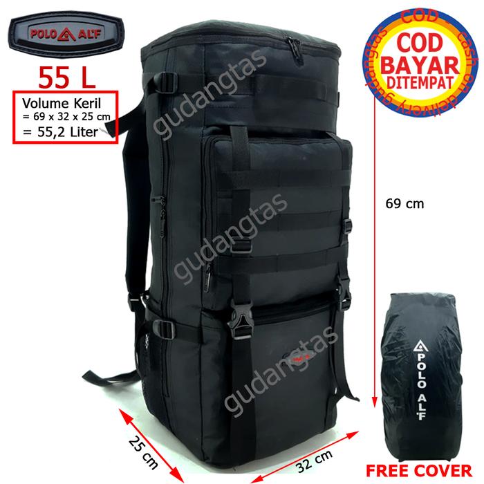 POLO ALF Tas Keril Gunung 02699 Backpack Muncak Military Ransel Pria Outdoor Carrier Camping Hiking 55L - hitam