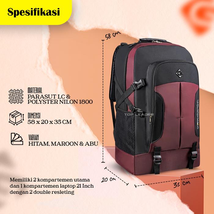 TOP LEADE - Ransel Camping CP02 Backpack 60 LITER Tas Punggu Jumbo - Merah