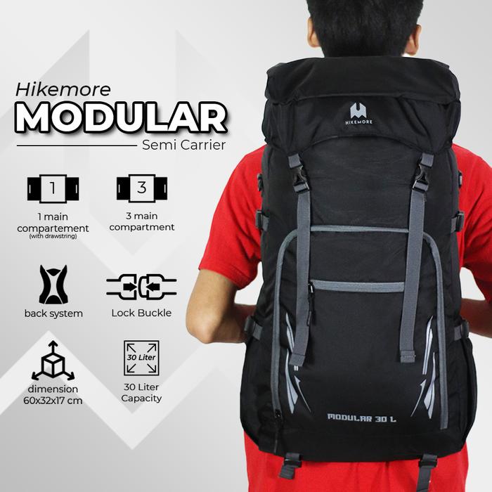 Tas Ransel Gunung Outdoor Semi Carrier Hikemore Modular Series Terbaru - Black