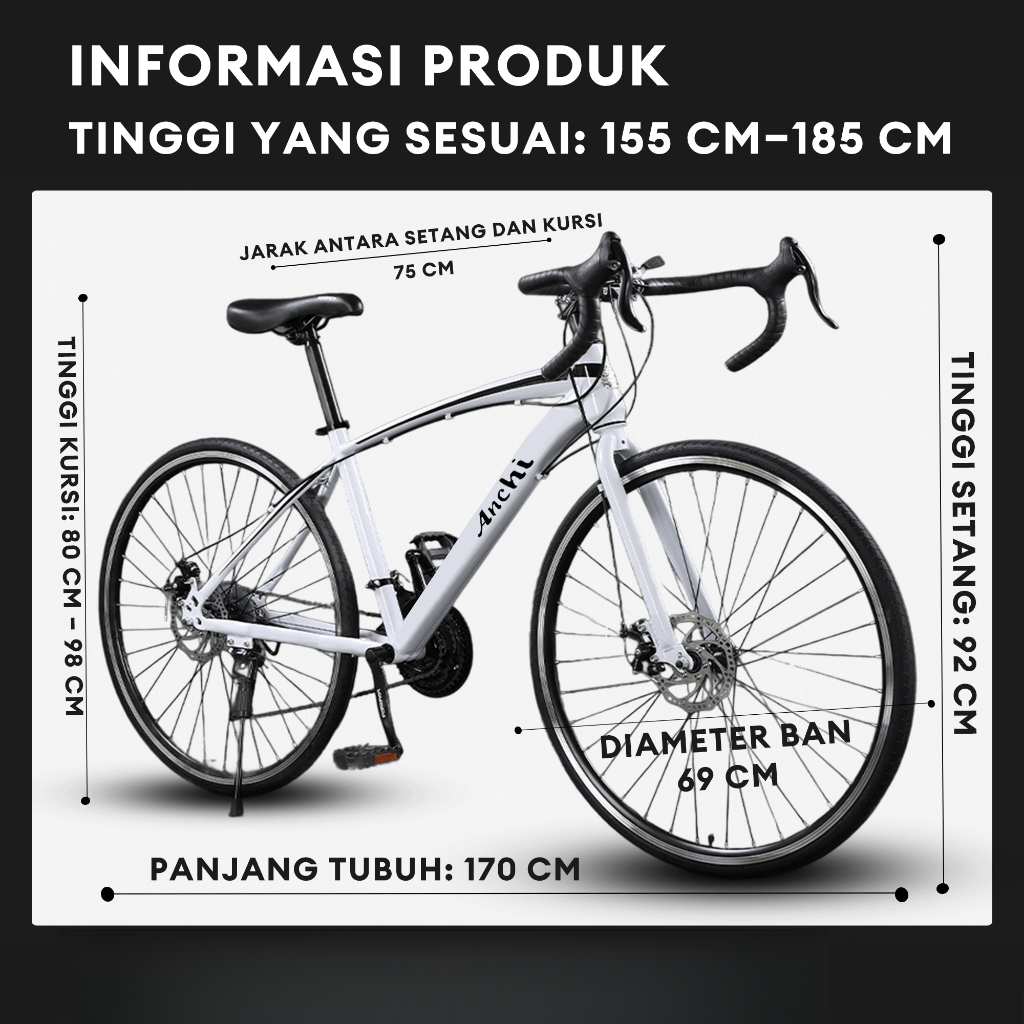 ANCHI Sepeda Road Bike 【Ready stock】700C 7 Speed 27.5 inci, Frame Aluminium, 26 Inch, Sepeda Balap atau sepeda Road bike