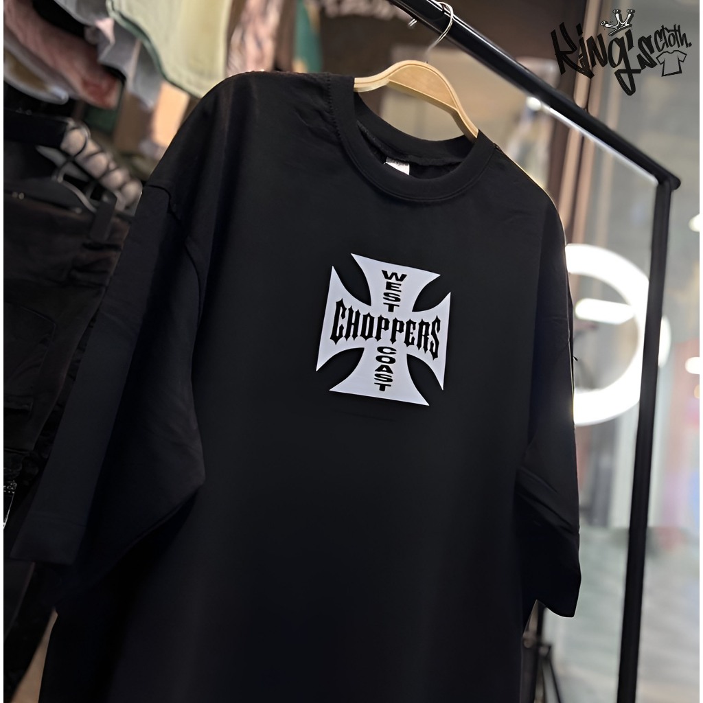 King's kaos Choppers West Coast premium pria wanita crew neck hitam putih katun 24s 301