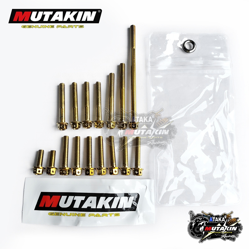 Baut probolt blok mesin set FIZR F1ZR Titanium kuning mengkilap silver