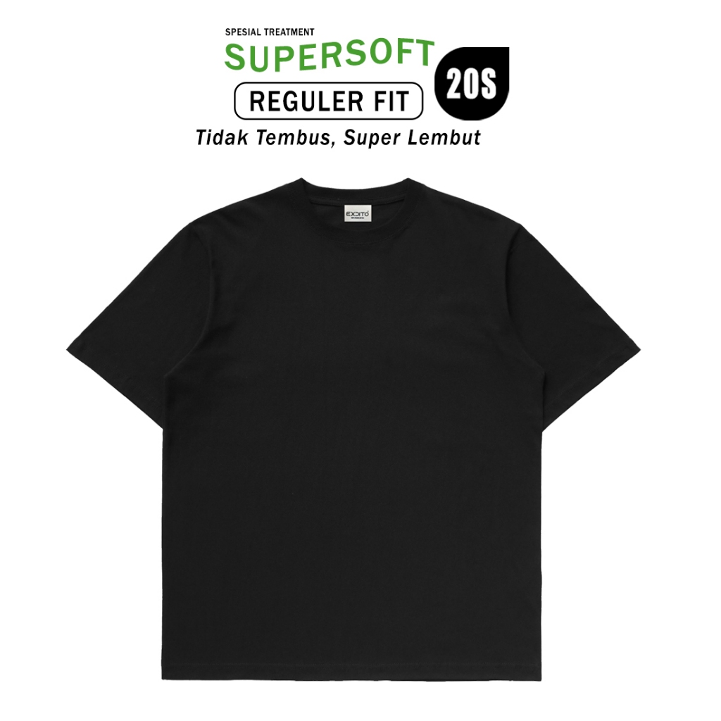 Excito Tshirt Kaos Polos Basic Premium Reguler Fit Unisex 20s Supersoft Black
