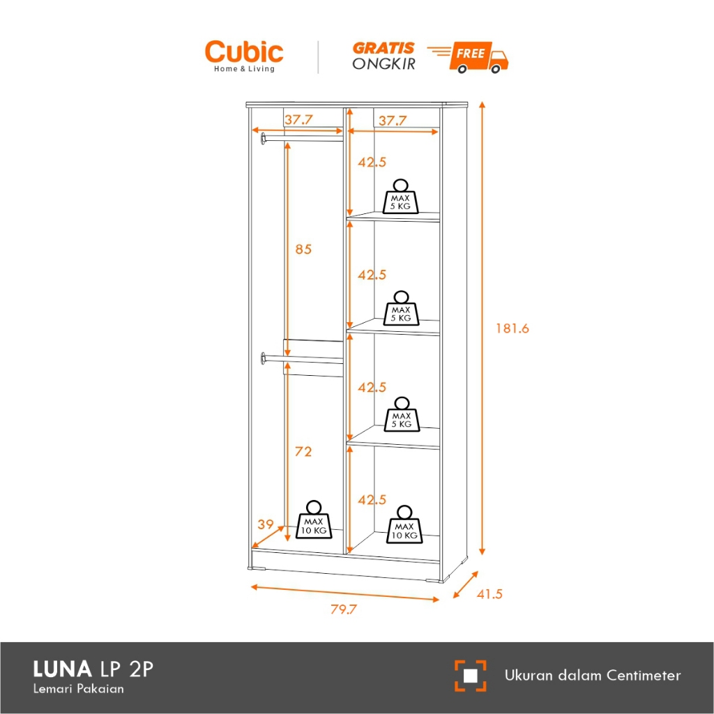 [Mall] LEMARI ANAK PEREMPUAN CUBIC LEMARI PAKAIAN BERGAMBAR LEMARI BAJU 2 PINTU LUNA LP 2P LEMARI ANAK BERKUALITAS MURAH