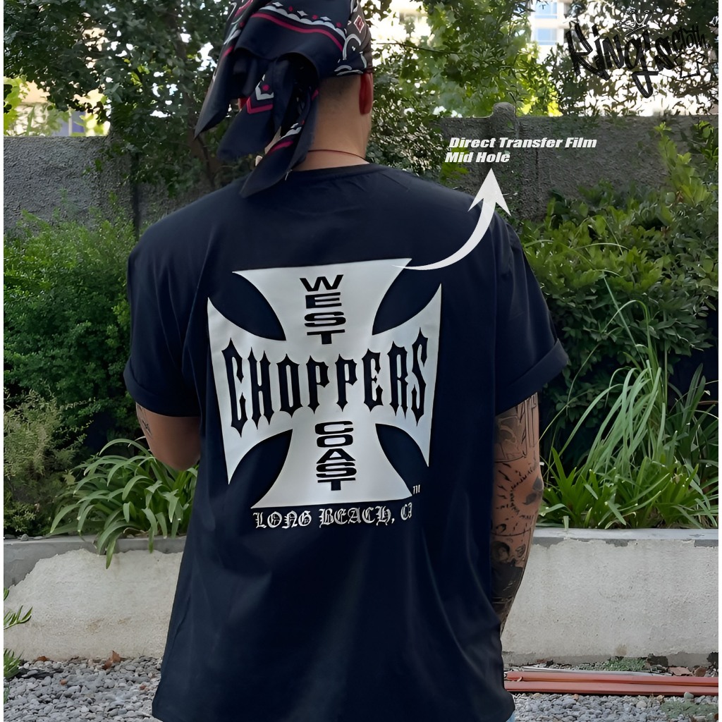 King's kaos Choppers West Coast premium pria wanita crew neck hitam putih katun 24s 301