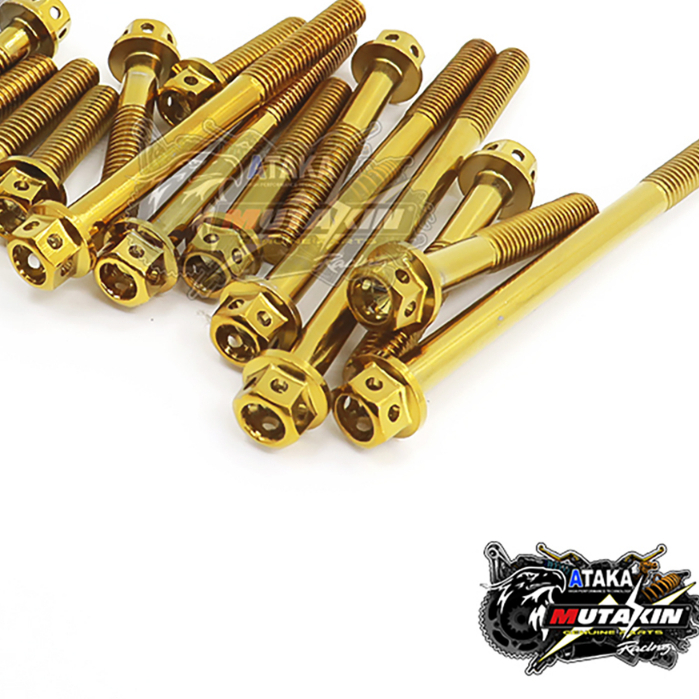mutakin Baut probolt blok mesin set VIXION / MX KING / R15 OLD Titanium kuning mengkilap