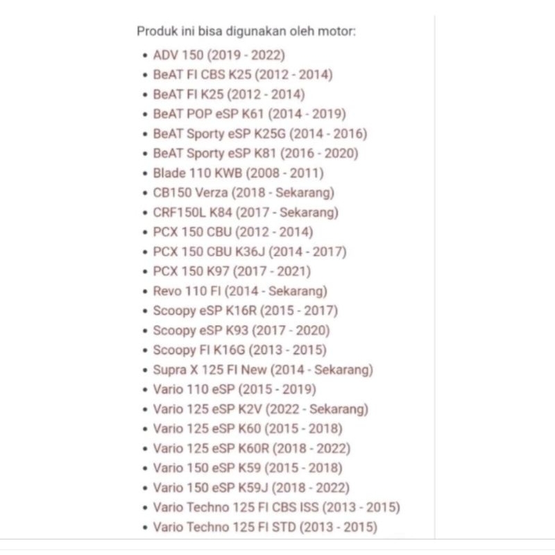 SEAL SIL KLEP ORI BEAT F1(12209-GB4-682)-ESP-POP-ADV 150-BLADE-REVO 110 F1-SUPRA X 125 F1 NEW-CRF-PCX 150- SCOOPY ESP-VA