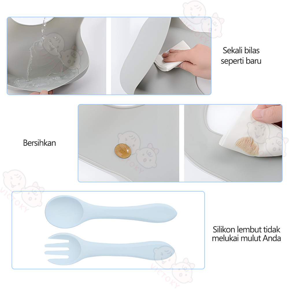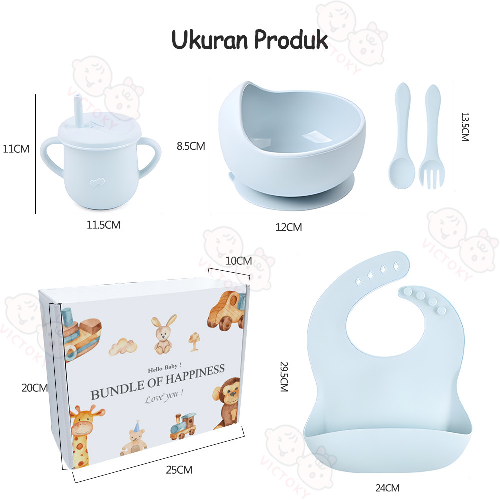 VICTOKY 5PCS Peralatan Makan Mpasi Bayi Set / Celemek Makan Bayi Silicone / Mangkok Sendok Bayi / Training Cup Anak