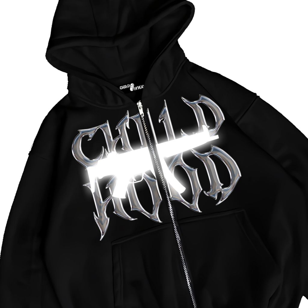 LIBERO STORE CHILDHOOD Hoodie Double Zipper Reflektif Sablon Nyala FRENEMY V2 Jaket Hitam Pria Wanita