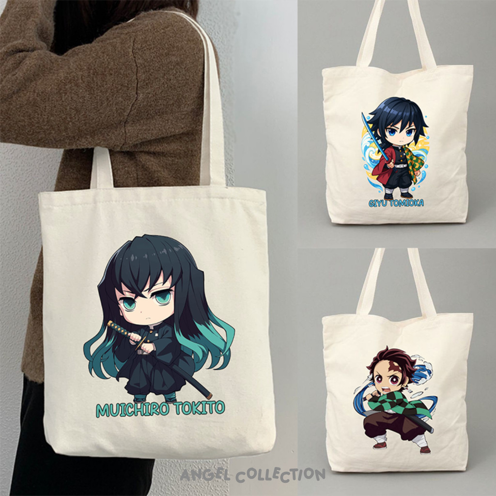 ENJEL Tas Tote Bag 100% Kanvas Demon Slayer Kimetsu No Yaiba Ukuran 30x40 Enjel Collection