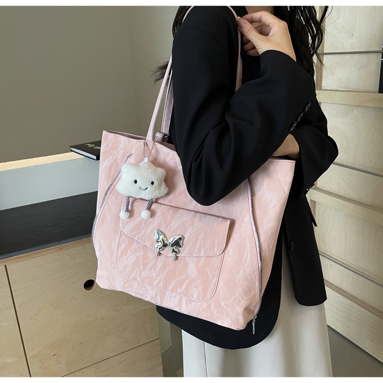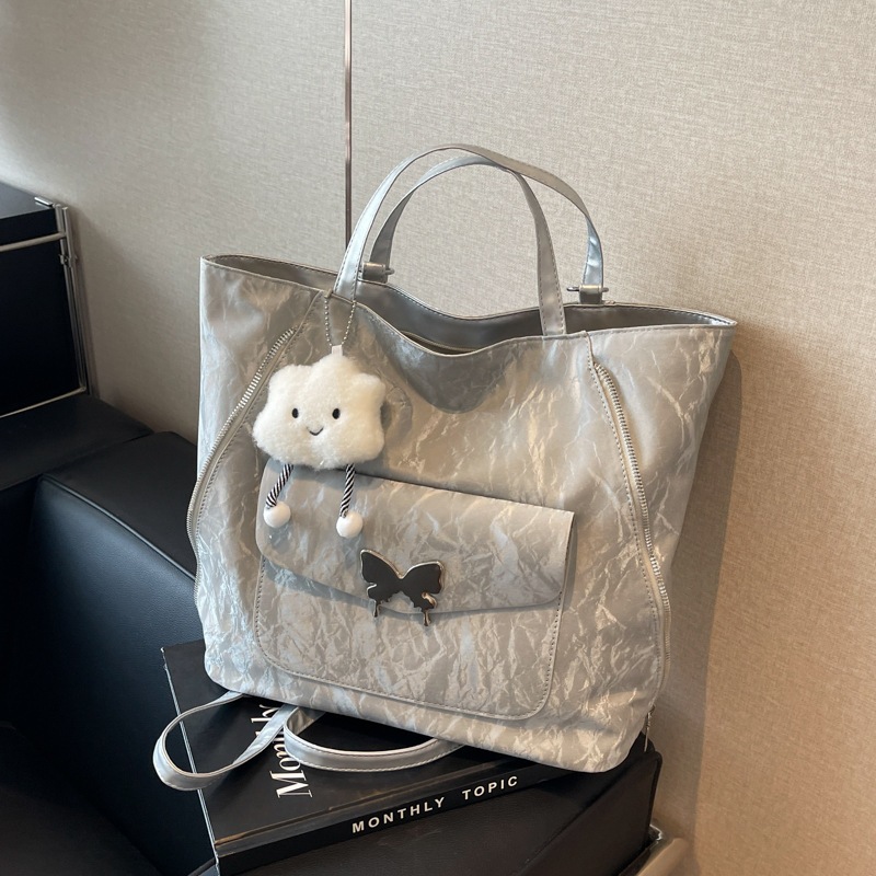 【Ready!】Tas bahu wanita kapasitas besar modis gaya Korea lembut Texte 2025 tas Tote ins kupu-kupu logam trendi baru