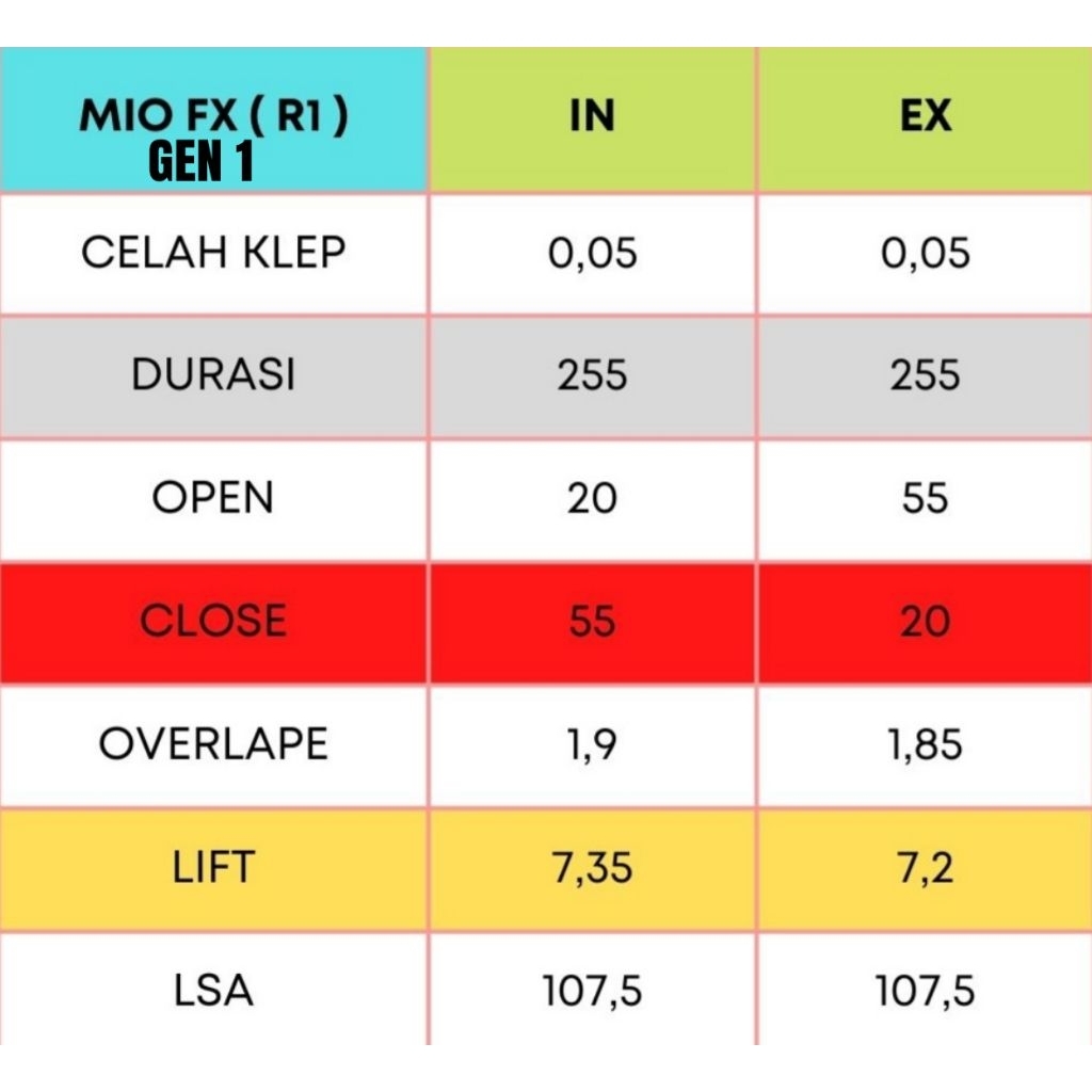 NOKEN AS MIO SOUL KARBU NOUVO MIO SPORTY 5TL RACING SPECIAL CAM SET RRA PER KLEP SWEDIA