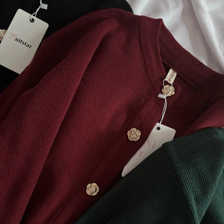 Cardigan Wanita Korea Kekinian Nitstar Calluna Cardigan Kancing Bunga Elegant