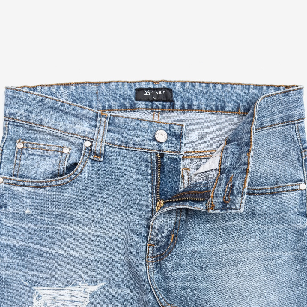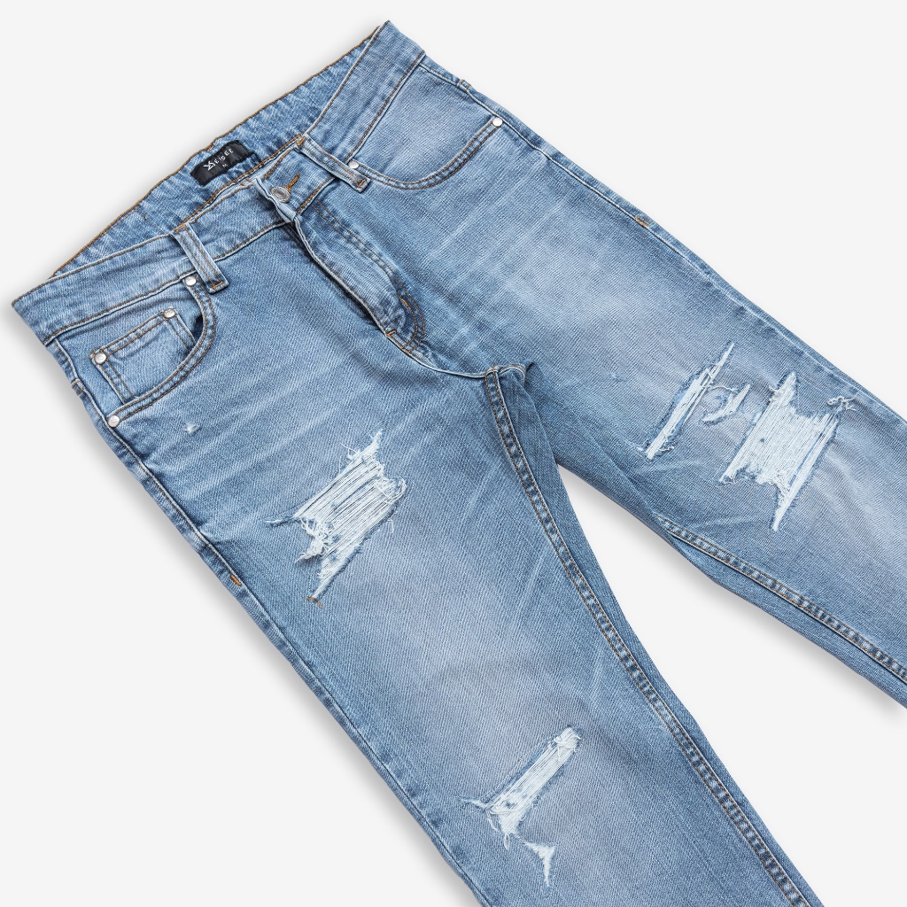 LIBERO STORE Eisee Slim Fit Ripped Denim: Icy Baby Blue