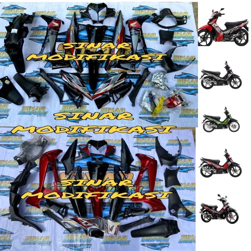 Full set cover body halus dan kasar Motor Supra x 125 Batman 2008-2014 karburator Merah & Hitam