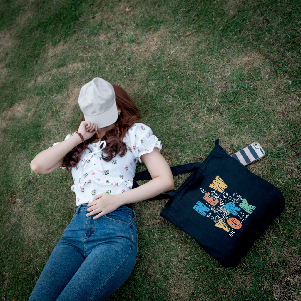Flade Studios Totebag Kanvas Hitam Resleting - Tas Kuliah Pria Wanita - City Series