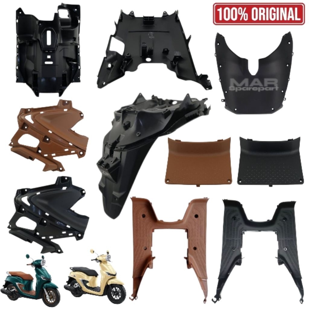 Cover kenalpot, Spakbor Depan Cream, SB kanan coklat, Tutup aki coklat, Step floor hitam, Cover lisence light, Spakbor Depan Putih, Garnish Depan, Spakbor Depan H Dof, Tutup aki Hitam
