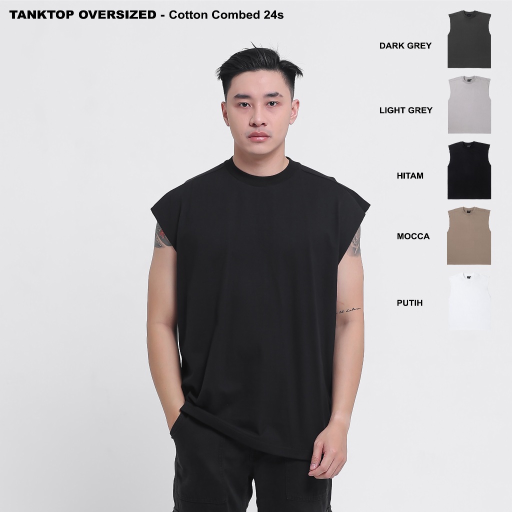 LIBERO STORE Heyplain Kaos Tanktop Hitam Oversized - Cotton Combed 24s