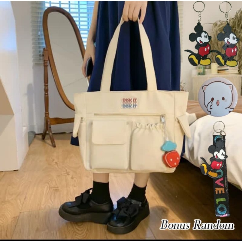 Tas Totebag Wanita Korean Style Bahan Kanvas Tas Selempang Slingbag Tote Bag kuliah Kerja Terbaru