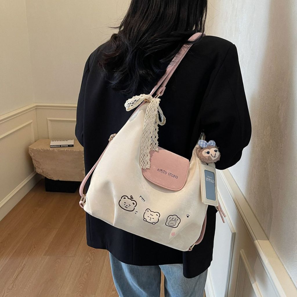 Tas Tote Bag Wanita Kanvas - Tas Anyaman Korean Style, Ukuran Besar Muat Laptop, Warna Minimalis Elegan
