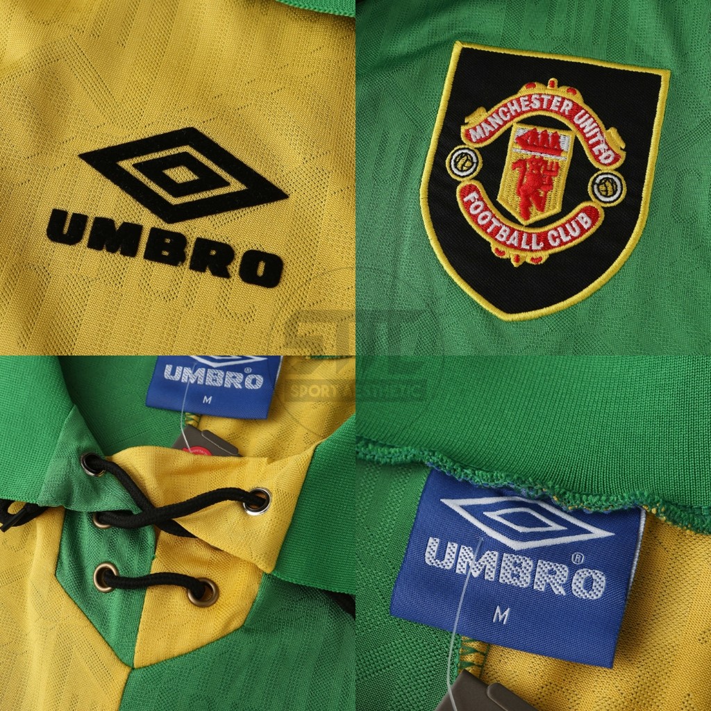 Jersey Retro Mnchstr Untd 1992 1993 1994 Away Hijau Kuning Baju Bola Emyu MU Vintage Pasang Custom Nama Nomor Punggung N