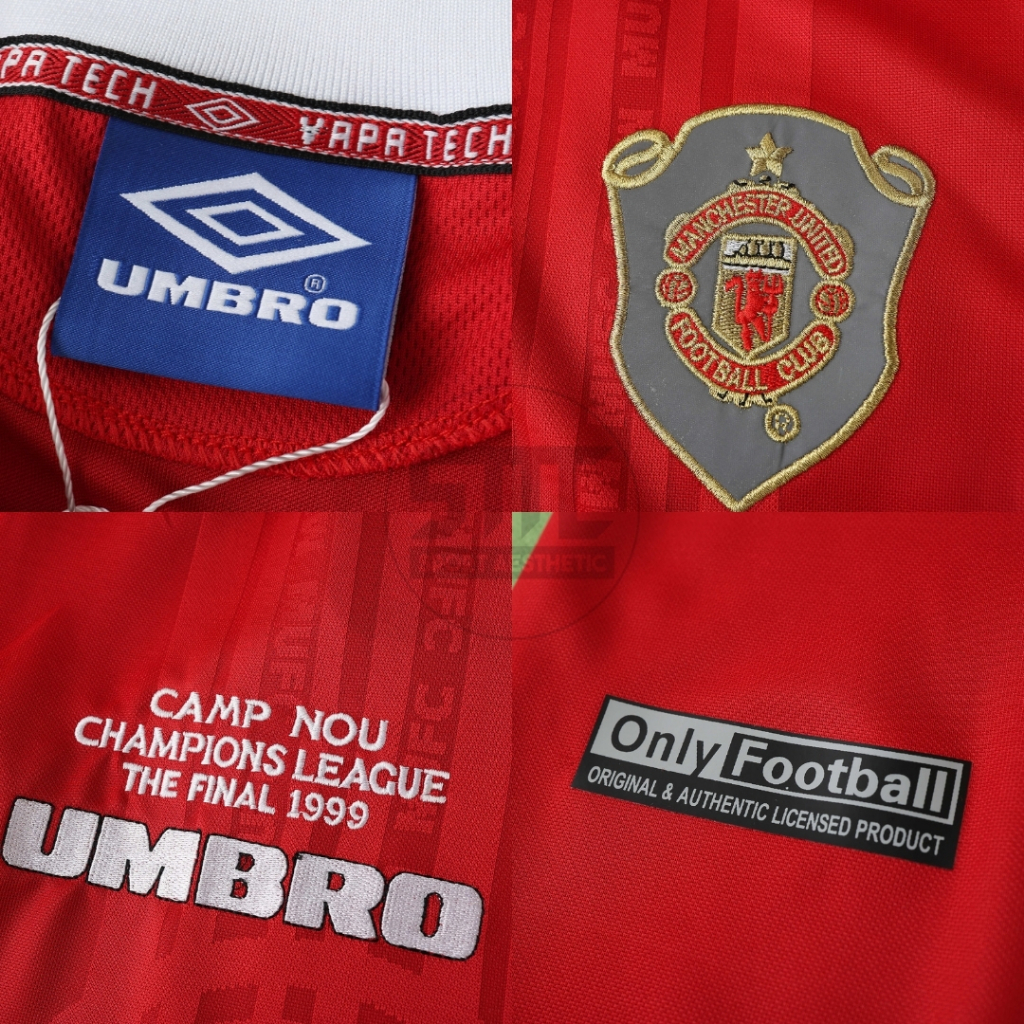 Jersey Retro Mnchstr Untd 1999 2000 Final Camp Nou Baju Bola Vintage MU Emyu Merah 99 00 Sharp Pasang Custom Nama Nomor
