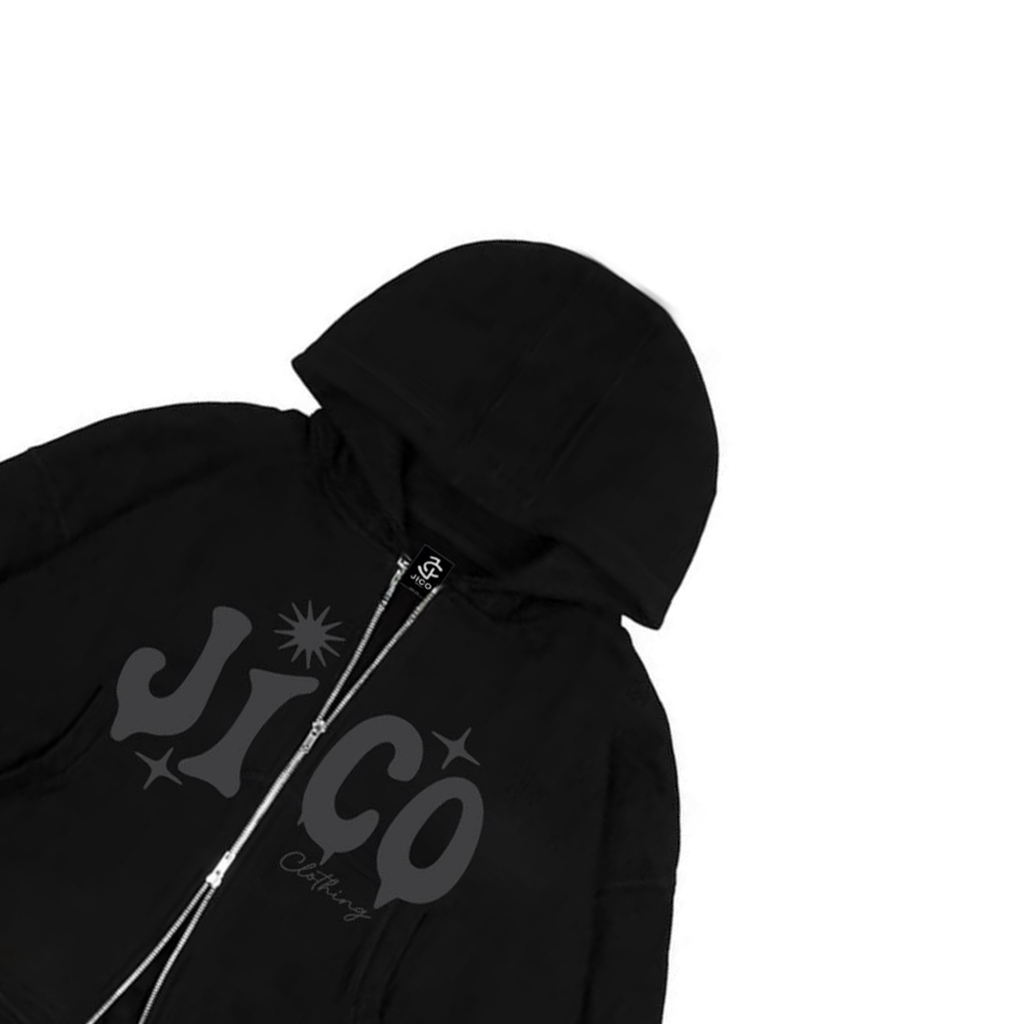 LIBERO STORE JICO - Sweater Hoodie Boxy Zipper DOUBLE ZIP Oversize Unisex Sablon Abu JC Clothing Warna Hitam