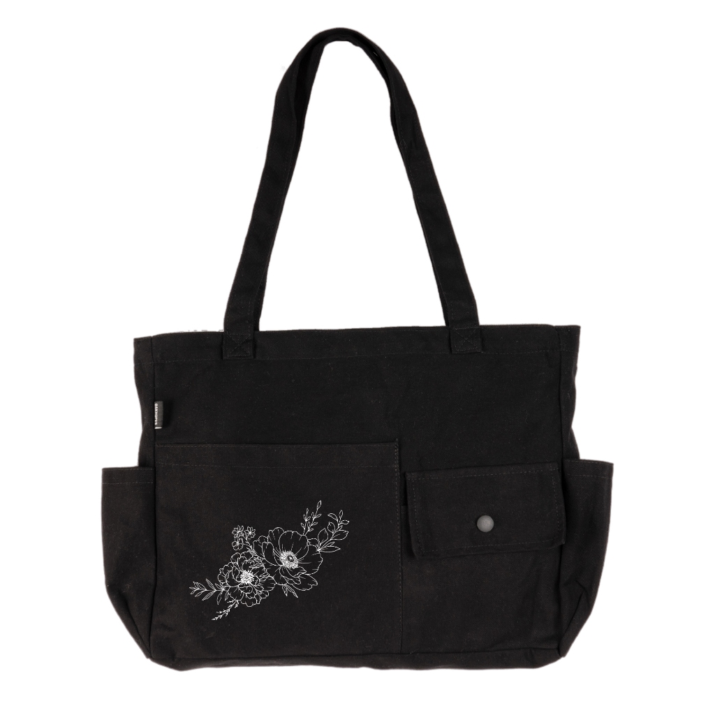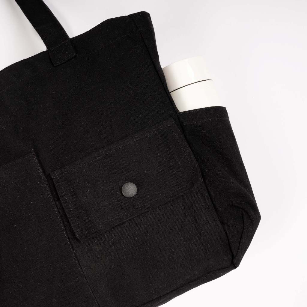 Oakhopes - Totebag Kanvas Hitam | Thera Tote Bag | Tas Kuliah Kerja Pria Wanita | Line Series