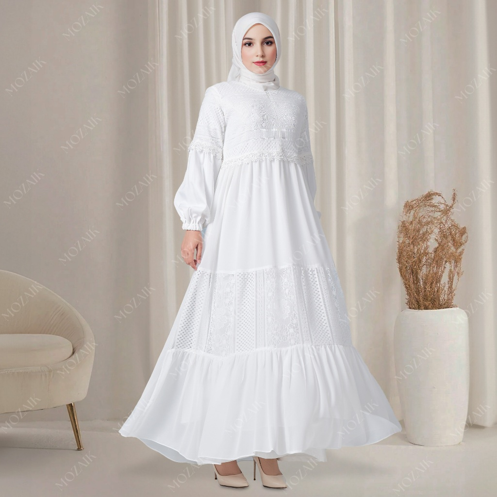 MOZAIK DRESS BEST SELLER FASHION MUSLIM GAMIS PUTIH WANITA MUSLIM KEKINIAN TERBARU ABAYA WARNA PUTIH DAN HITAM TURKEY TU