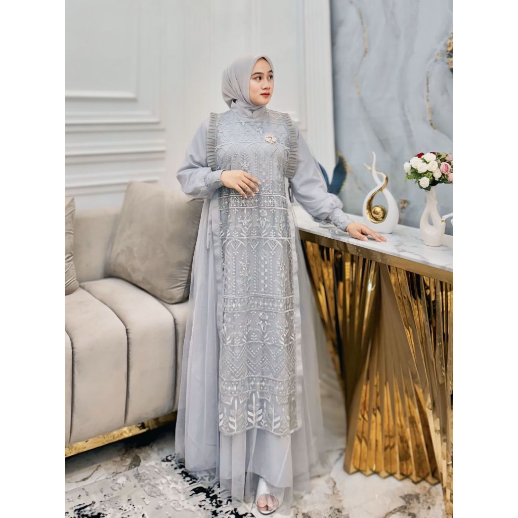 Nikita Gamis Pesta Burgandy Wanita Remple Depan Mewah Kekinian 2025 Baju Kondangan Brukat Premium qm