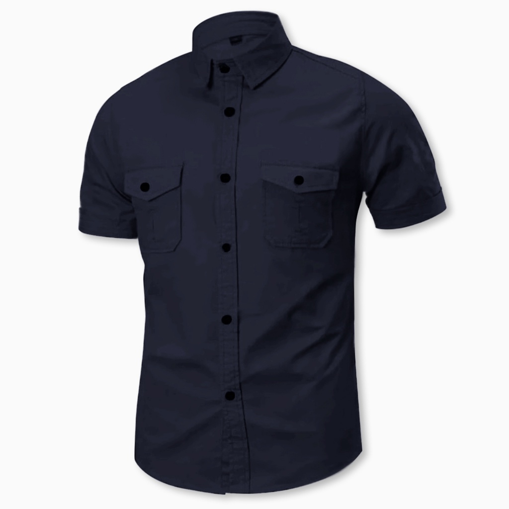 LIBERO STORE FortKlass Angga kemeja polos pria lengan pendek kasual slimfit cowok