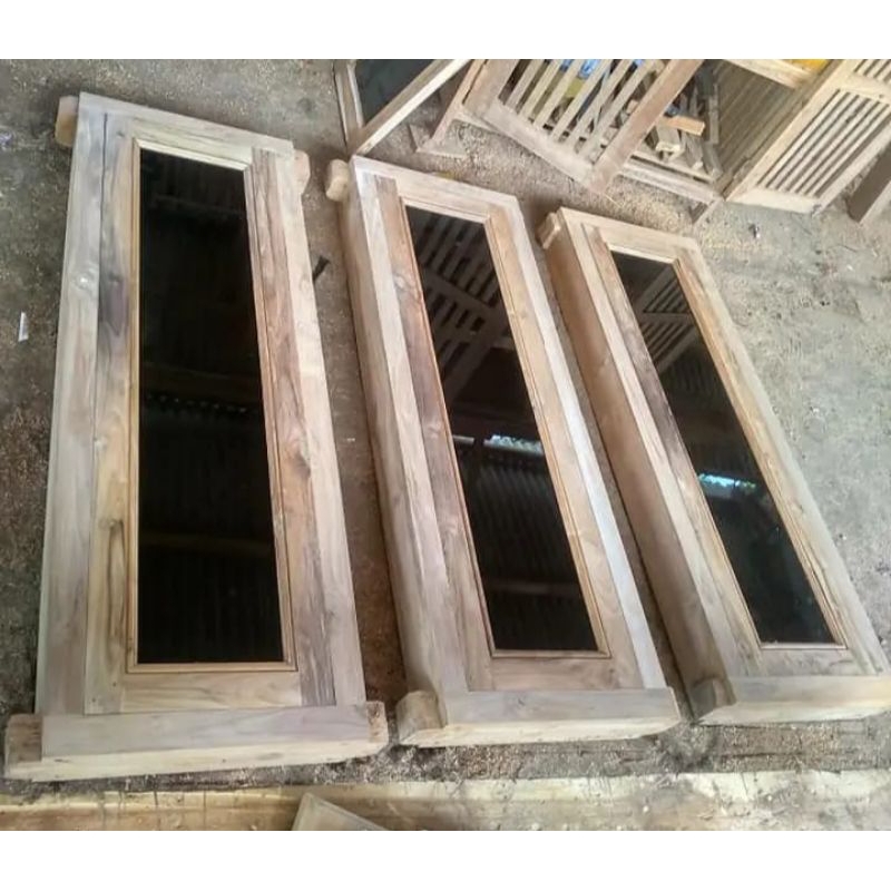 jendela kayu mauni mahoni kaca hitam murah readystock po cepat kargo