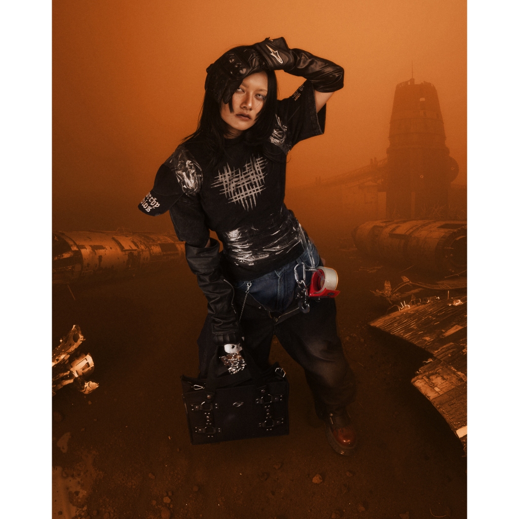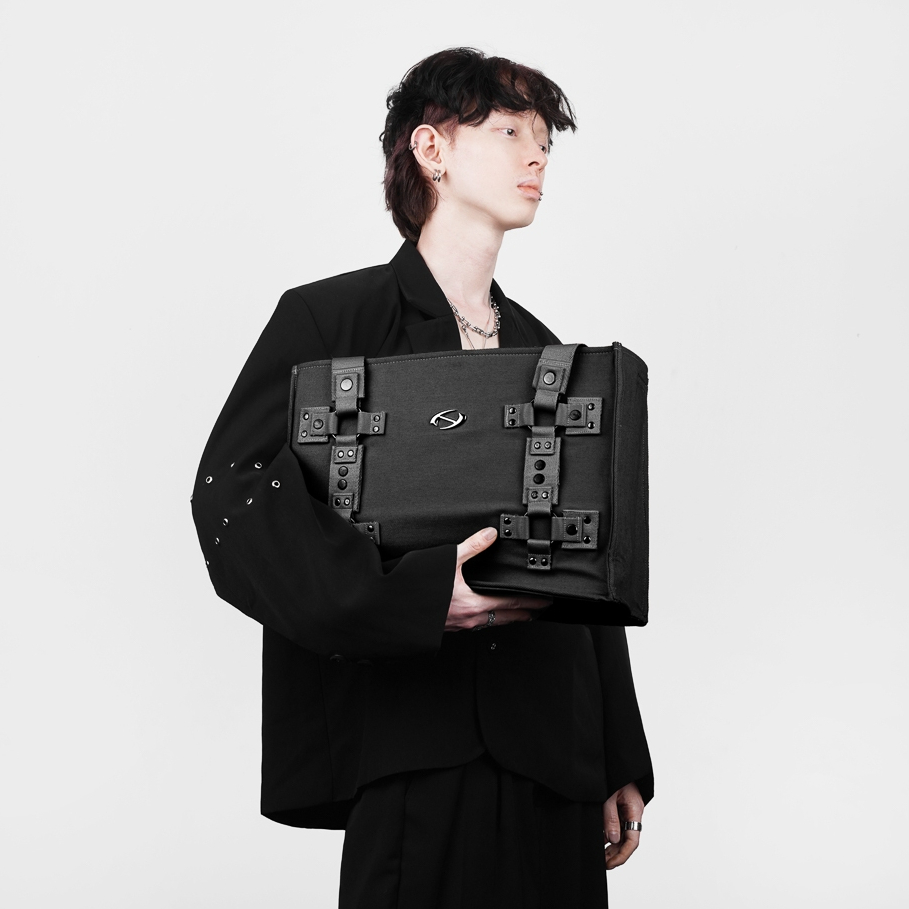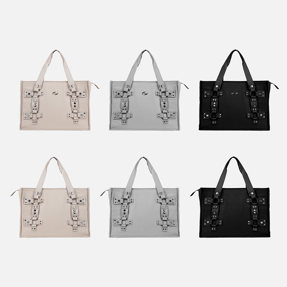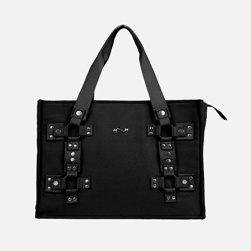 HIERARCHY STUDIOS ENE - Black Metal Plate Stud Tote Bag