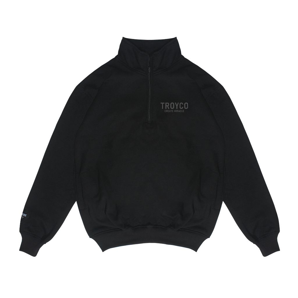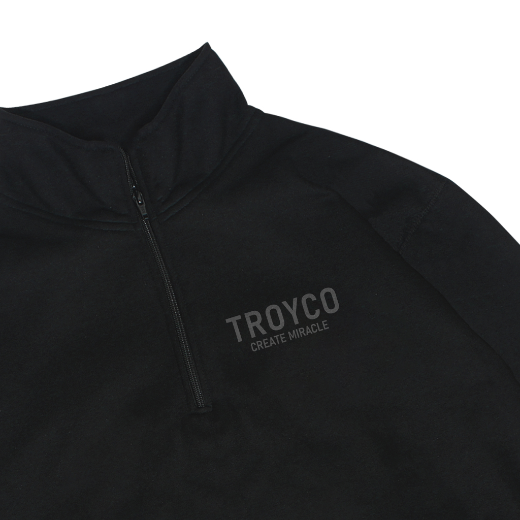 COLENAK STORE Troy Company Sweater Crewneck Half Zipper Black Miracle - Half Zip Pria Hitam HZ 2526