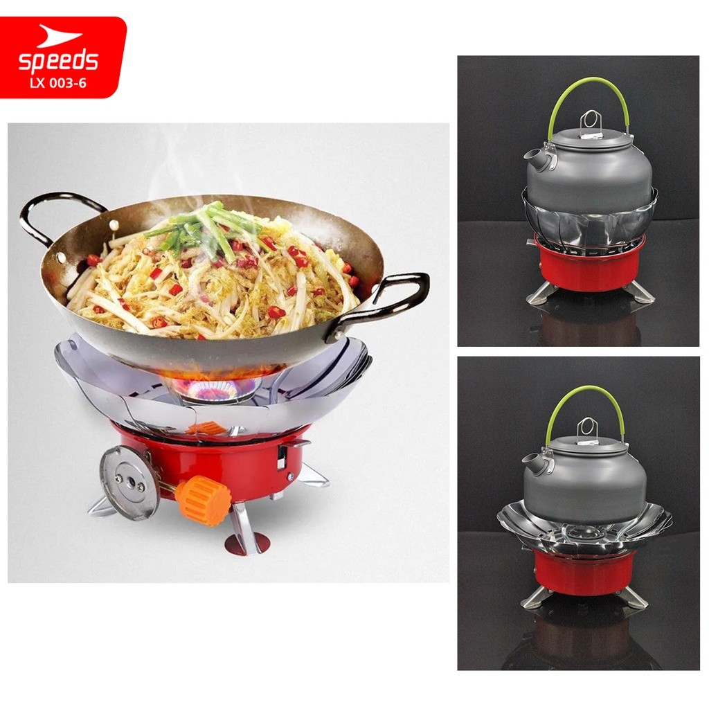ALADIN_STORE SPEEDS Kompor Camping Gas Alat Masak Alam Mini Kompor Lipat Bunga Anti Angin WindProof Nesting Portable+TAS 003-6