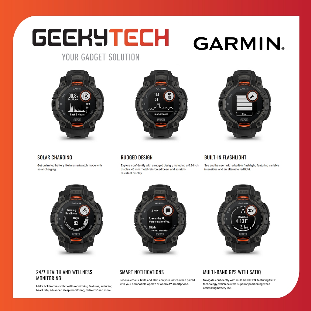 Smartwatch Garmin Instinct 3 SOLAR GPS - Garansi RESMI TAM