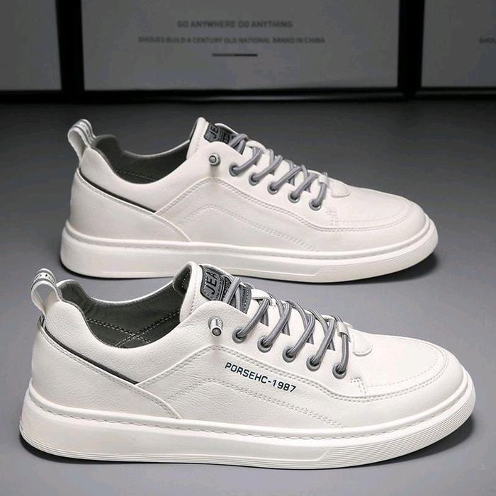 [Star](Free Kaos Kaki)Sepatu Pria Formal Sepatu Putih Sneakers Karet Casual Shoes - Jens 1987, 39