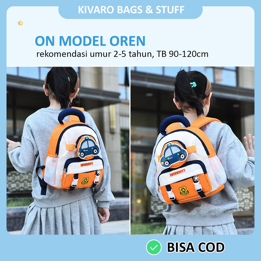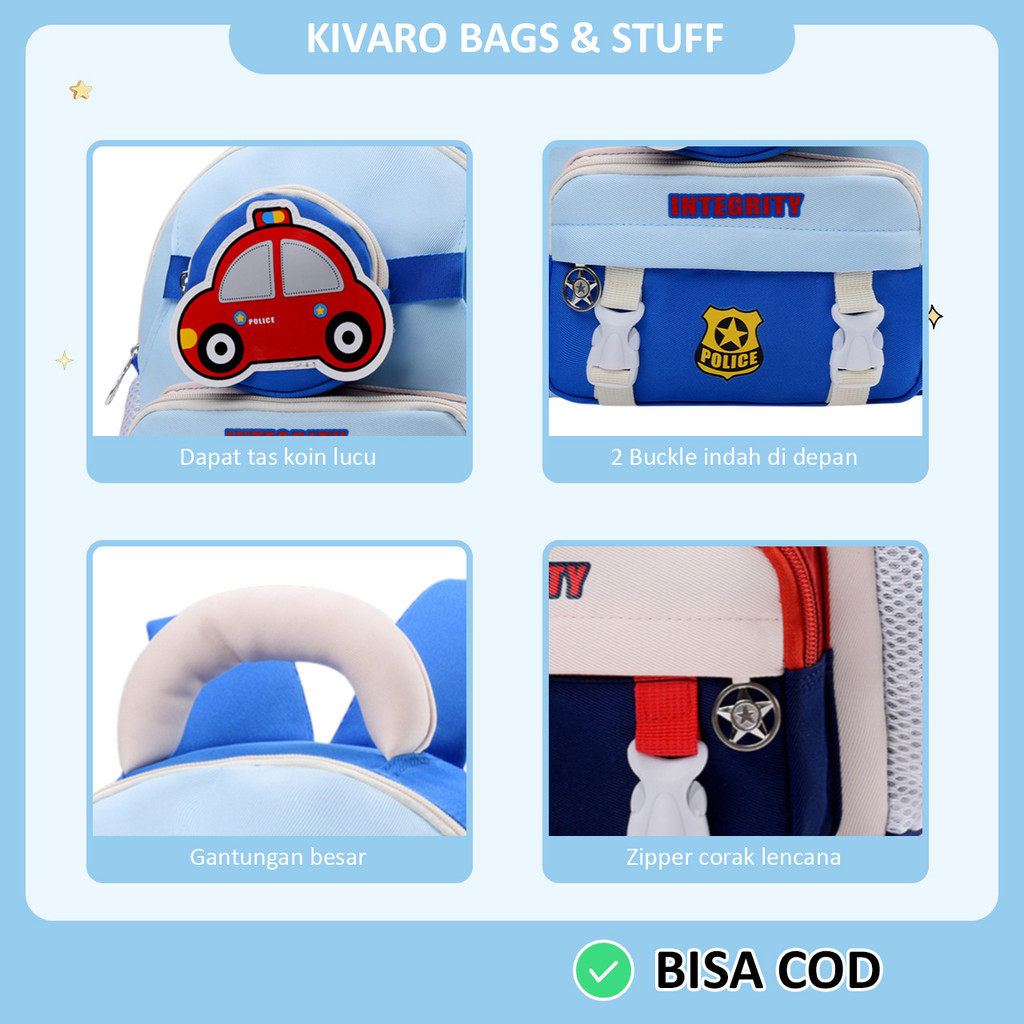 [HOT] Kivaro SpeedPatrol Series Tas Anak TK PAUD Motif Mobil Polisi Laki-laki Usia 2-4Thn 30cm | 628