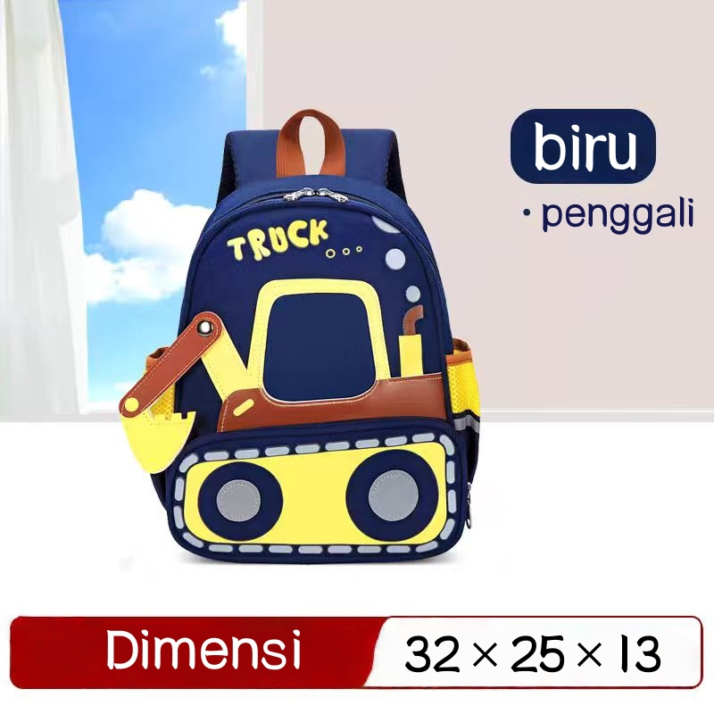 Tas Ransel Sekolah Anak TK Laki-Laki Anti Air Model Truck Tas Ransel Pelajar