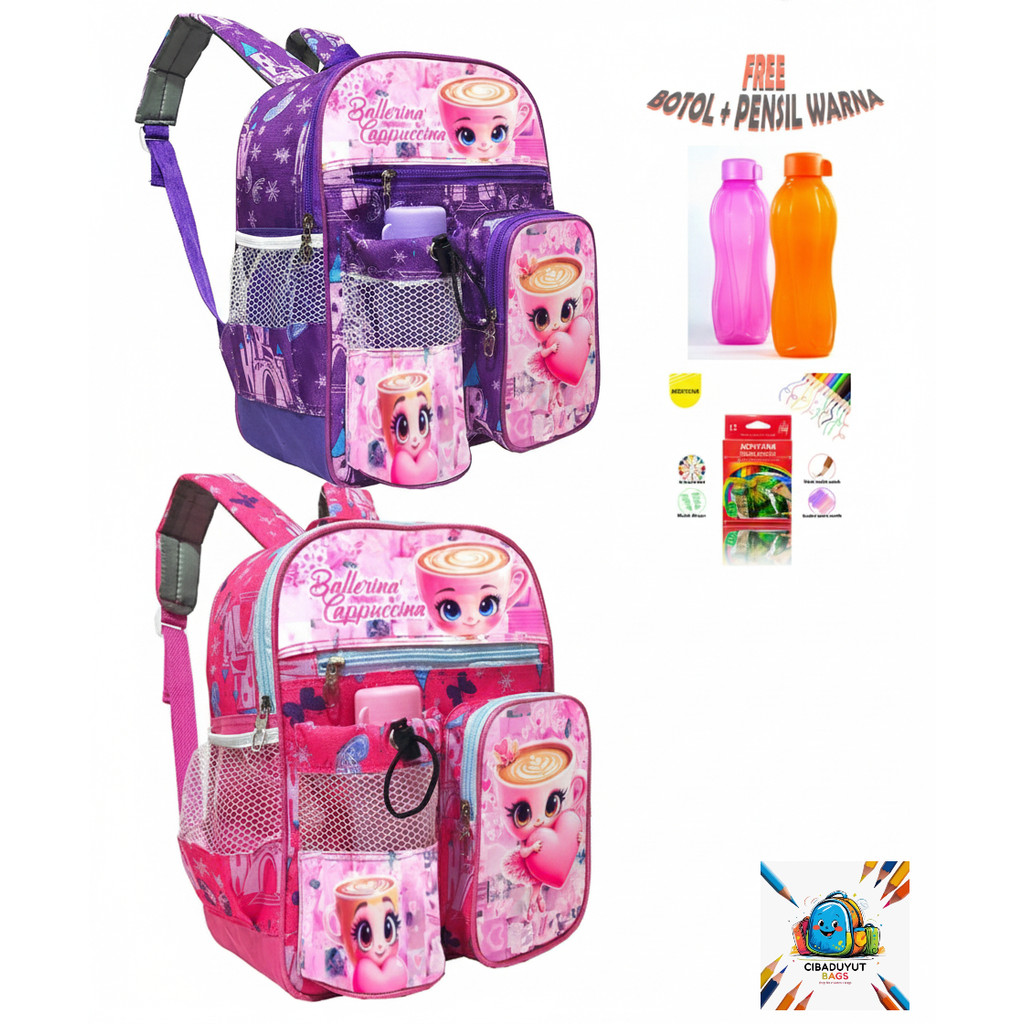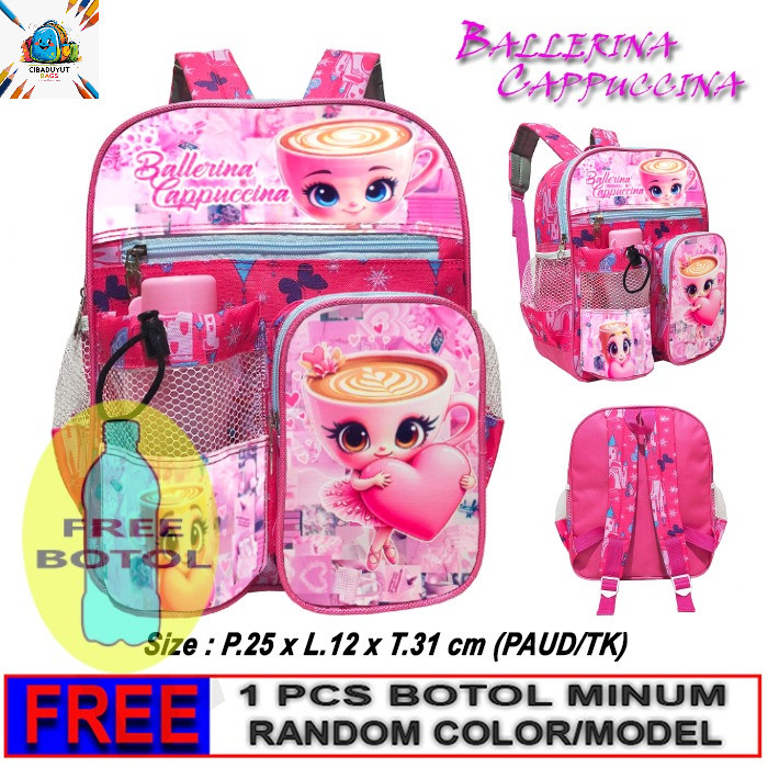 Tas Sekolah Anak PAUD/TK / Tas Ransel Anomali Balerina Cappucina Cewe FREE BOTOL MINUM 300ML