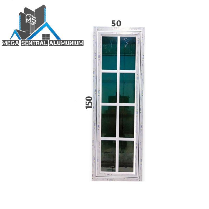 jendela alumunium 3in+ornamen ukuran L50xT150 komplit gratis pakking kayu