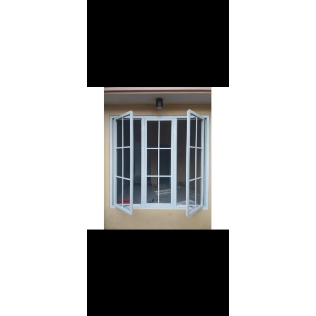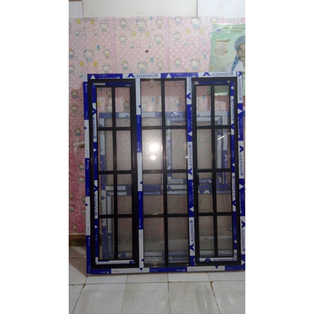 SET JENDELA GANDENG 3 DAUN ,KIRI KANAN AKTIF[BISA BUKA TUTUP] BAGIAN TENGAH KACA MATI . UK. T.180x150 BISA COSTUM UK,WA