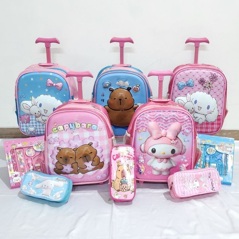 TAS TROLLEY ANAK PEREMPUAN TK SD 3D TIMBUL LED GAMBAR KARAKTER MELODY CINAMON