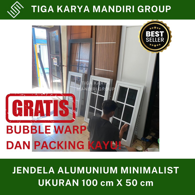 (Jendela UK 50x100 Casment/ jungkit / Swing Alumunium 1 Daun Minimalist/Minimalis Pakai List Ornamen UK 100x50 BISA CUST
