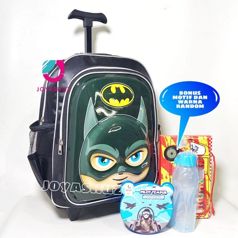Tas Troli Anak Laki Laki TK SD - Ransel Troli Batman - Tas Roda Anak Laki Laki - Joyahuz