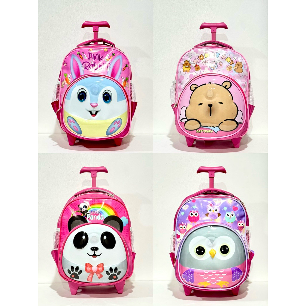 Tas Troli Anak Perempuan laki laki TK 3D Timbul LED LABUBU ASTRONOT CAPYBARA