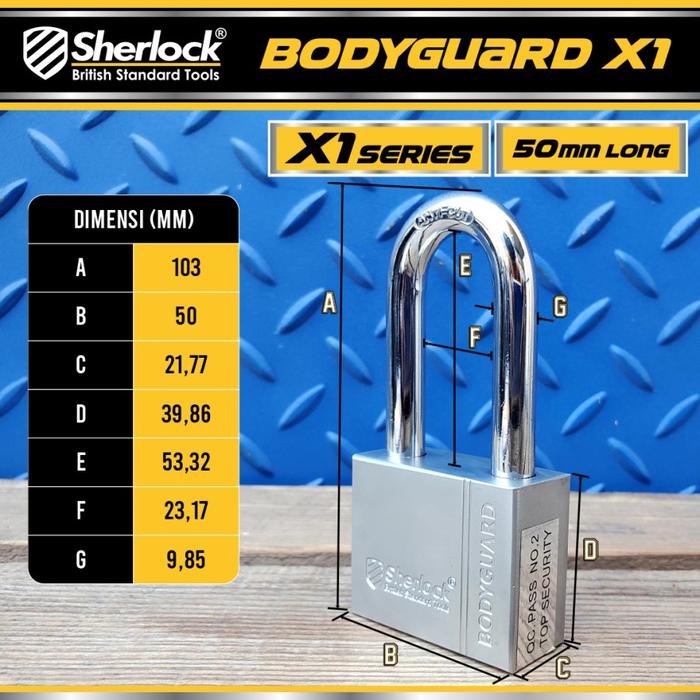 Gembok Sherlock BODYGUARD Seri X1 50mm Panjang