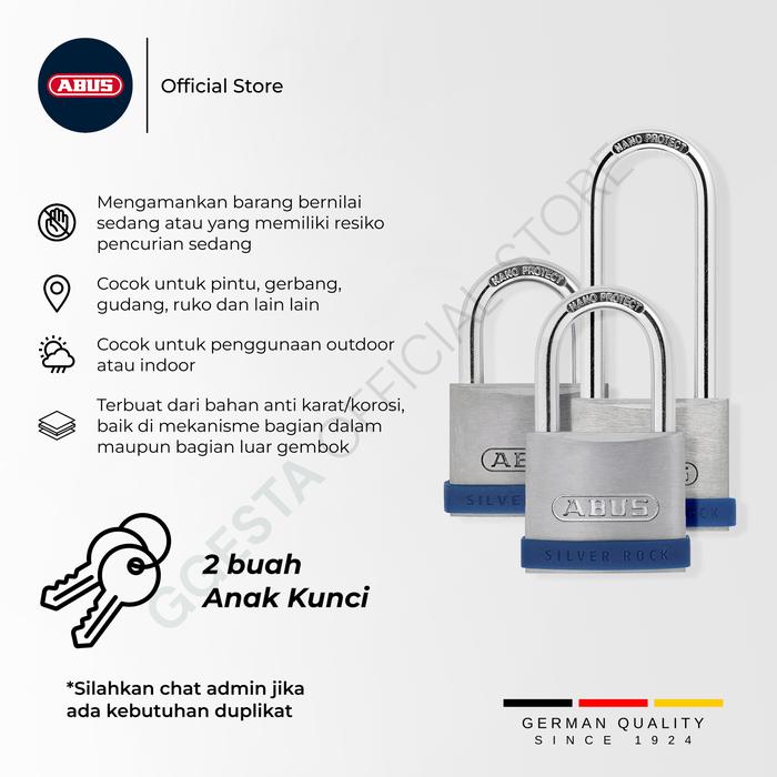 ABUS Gembok Pagar Anti Karat 5 Series SILVER ROCK HEAVY DUTY & WEATHERPROOF Anti Saw - Germany