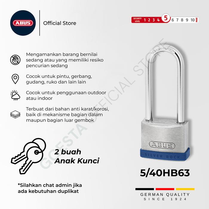 ABUS Gembok Pagar Anti Karat 5/40HB63 SILVER ROCK HEAVY DUTY & WEATHERPROOF Anti Saw - Germany