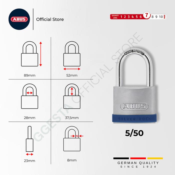 ABUS Gembok Pagar Anti Karat 5/50 SILVER ROCK HEAVY DUTY & WEATHERPROOF Anti Saw - Germany